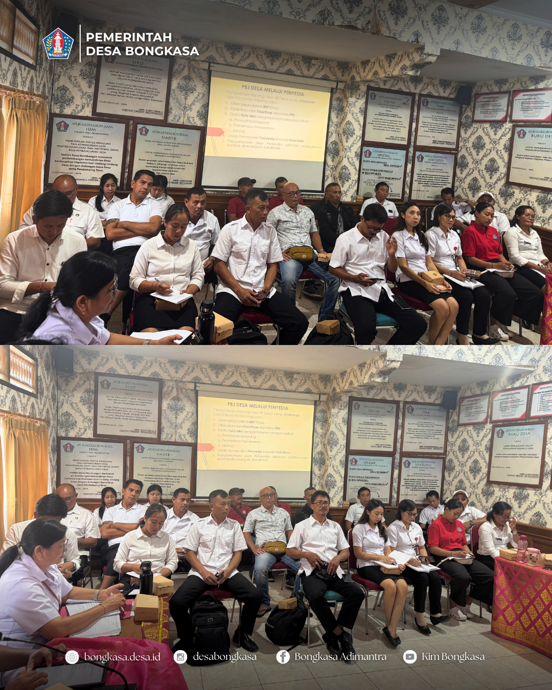 Pemerintah Desa Bongkasa mengadakan Bimbingan Teknis (Bimtek) Pengadaan Barang dan Jasa bertempat di Aula Kantor Desa Bongkasa pada tanggal 4 s.d 5 Februari 2026.