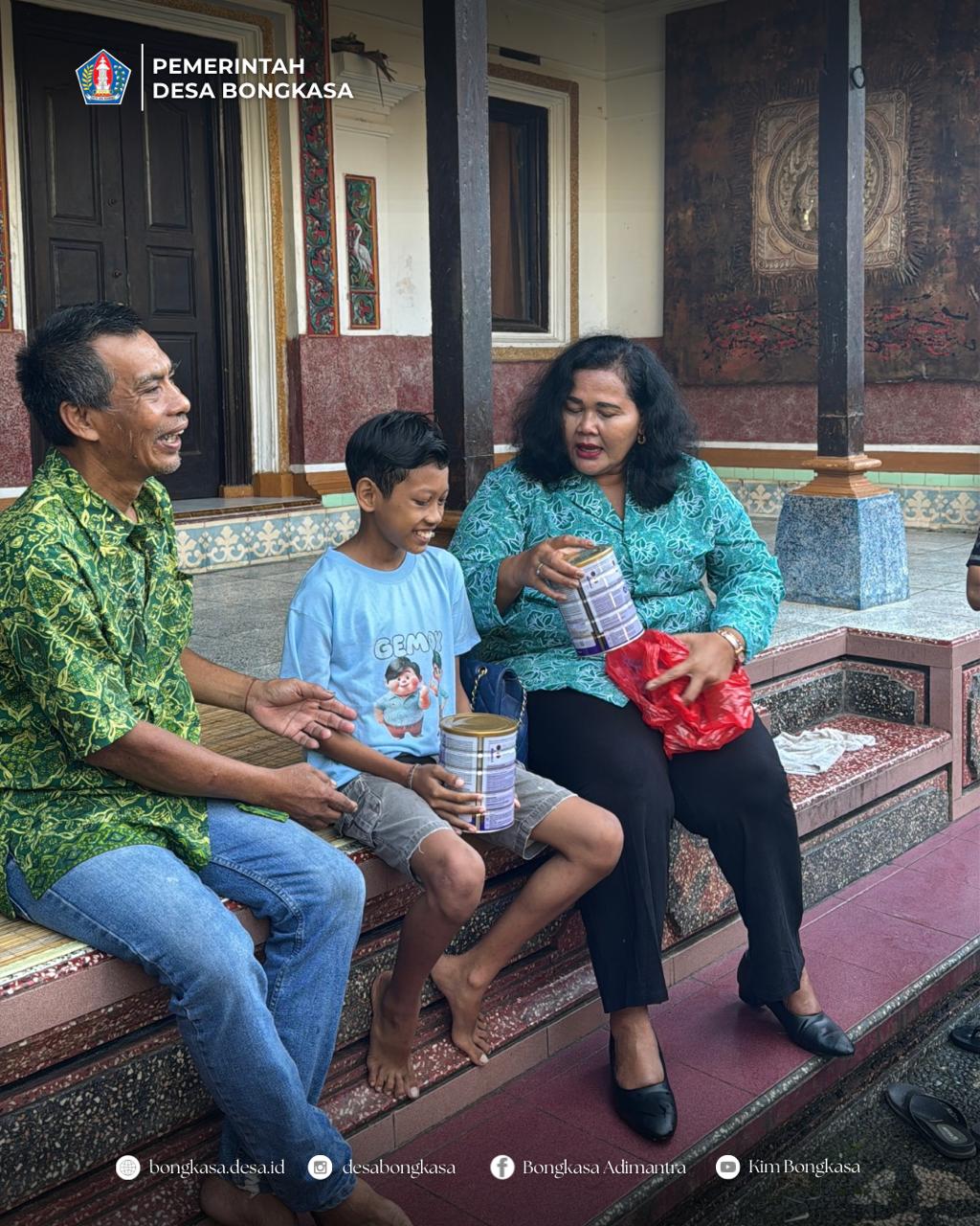 Pemerintah Desa Bongkasa melaksanakan kegiatan pemberian susu formula bagi warga Banjar Teguan yang mengalami gizi buruk karena gangguan usus yang diderita dari lahir pada Selasa, 14 April 2026.