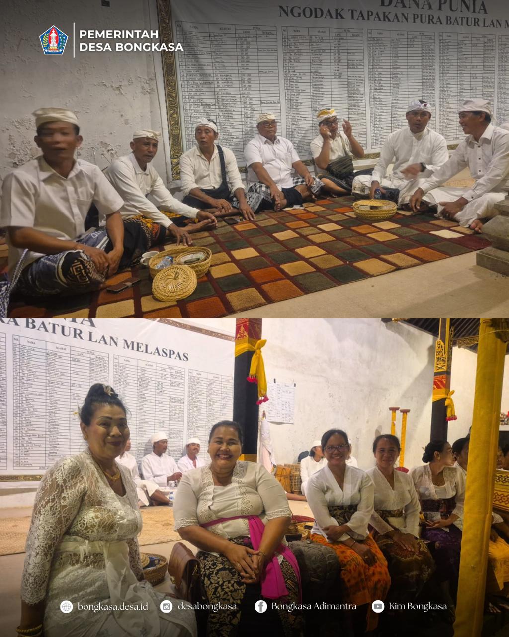 Bapak Perbekel Bongkasa didampingi Ibu Perbekel Bongkasa serta Perangkat Desa dan Staf Pemerintah Desa Bongkasa melaksanakan persembahyangan bersama Odalan Nyatur di Pura Batur Br. Pengembungan pada Rabu, 08 April 2026.