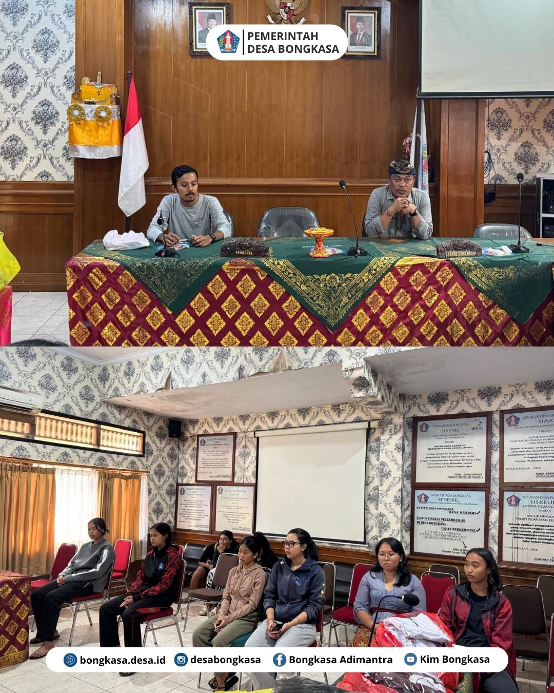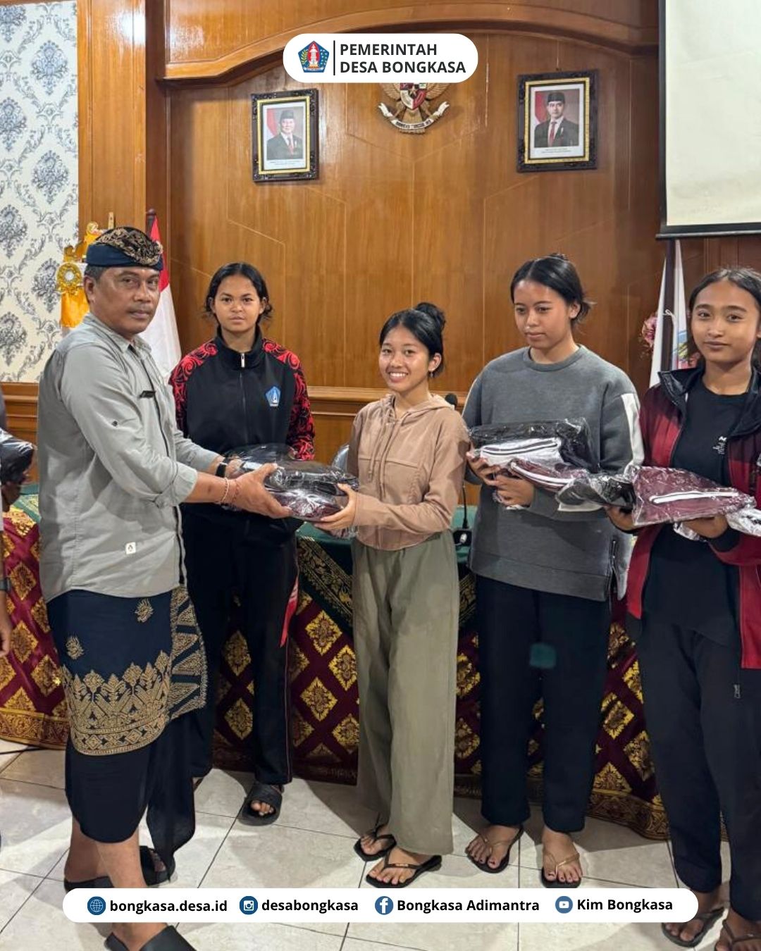 Bongkasa, 16 Oktober 2025 Pemerintah Desa Bongkasa bersama dengan Panitia Mangupura Cup 2025 menyerahkan perlengkapan bertanding kepada para atlet Putri Desa Bongkasa bertempat di aula ruang pertemuan kantor Desa Bongkasa.