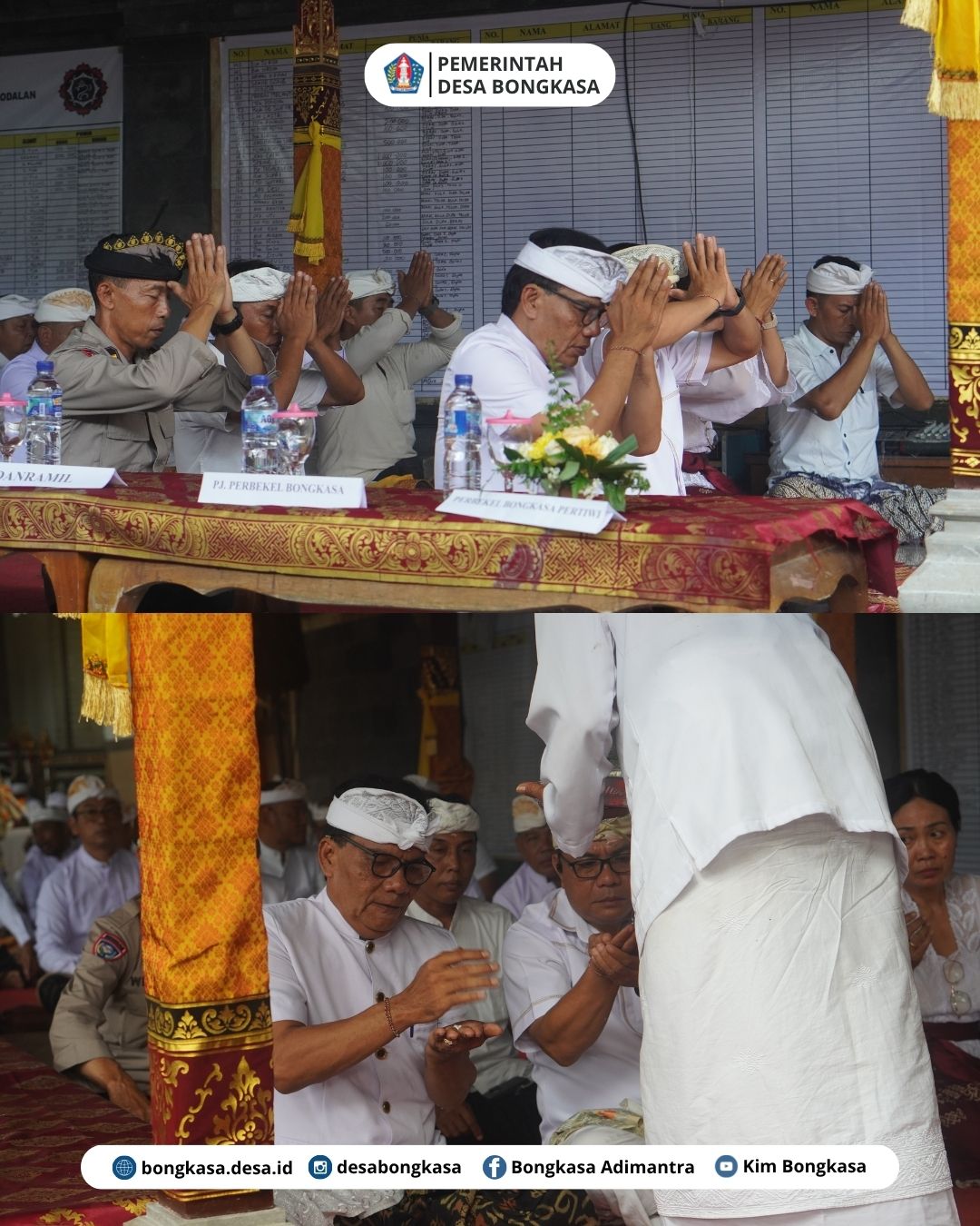 Pj. Perbekel Bongkasa Bapak I Made Sukarada menghadiri rangkaian Karya Ngenteg Linggih Mecaru, Rsigana, Wraspati Kalpa, Melaspas, Mendem Pedagingan, Lan Piodalan Ring Pura Melanting Banjar Sayan Tua pada Selasa, 21 Oktober 2025.