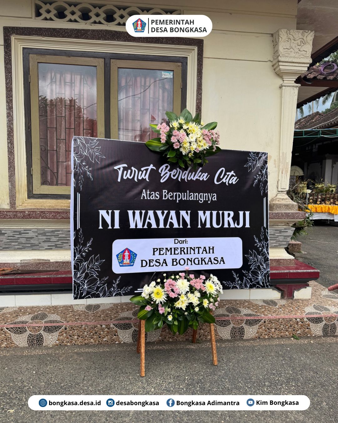 Pemerintah Desa Bongkasa melayat ke rumah duka Alm. Ni Wayan Murji yang beralamat di Banjar Pengembungan Sari yang sekaligus menyerahkan bantuan berupa sarana prasarana upacara pada Jumat, 31 Oktober 2025.