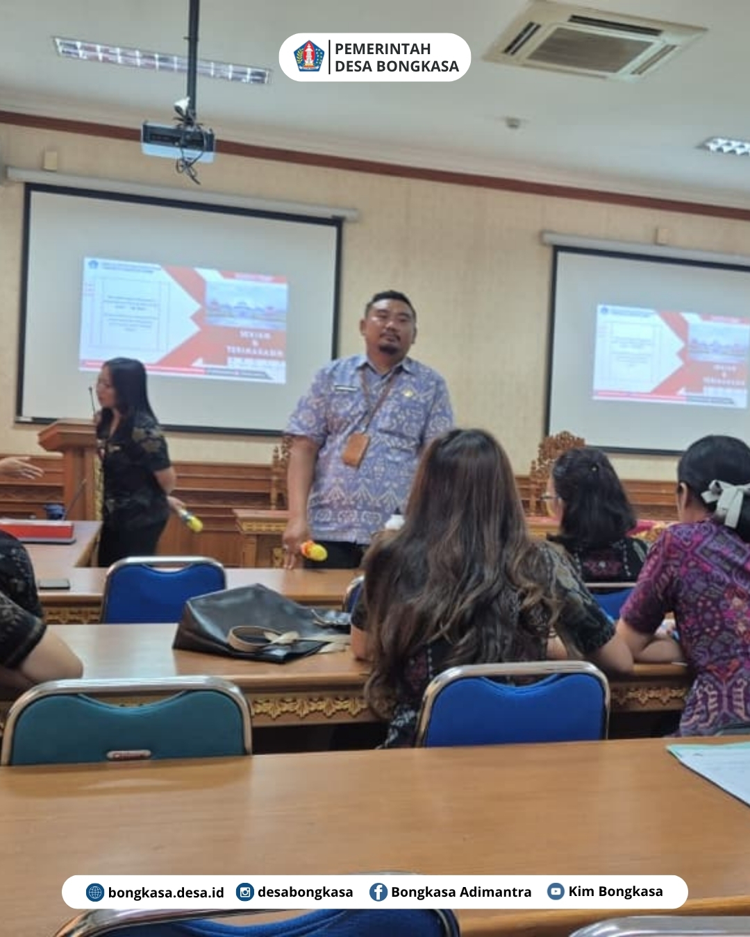 Selasa, 07 Oktober 2025 Pemerintah Desa Bongkasa yang diwakili oleh Kaur TU & Umum menghadiri acara Pembinaan, Supervisi Kearsipan dan Sosialisasi Penyusutan Arsip dalam rangka meningkatkan pengelolaan Arsip Dinamis di Lingkungan Pemerintah Kabupaten Badung yang bertempat di Ruang Rapat Diskerpus Lantai 3.