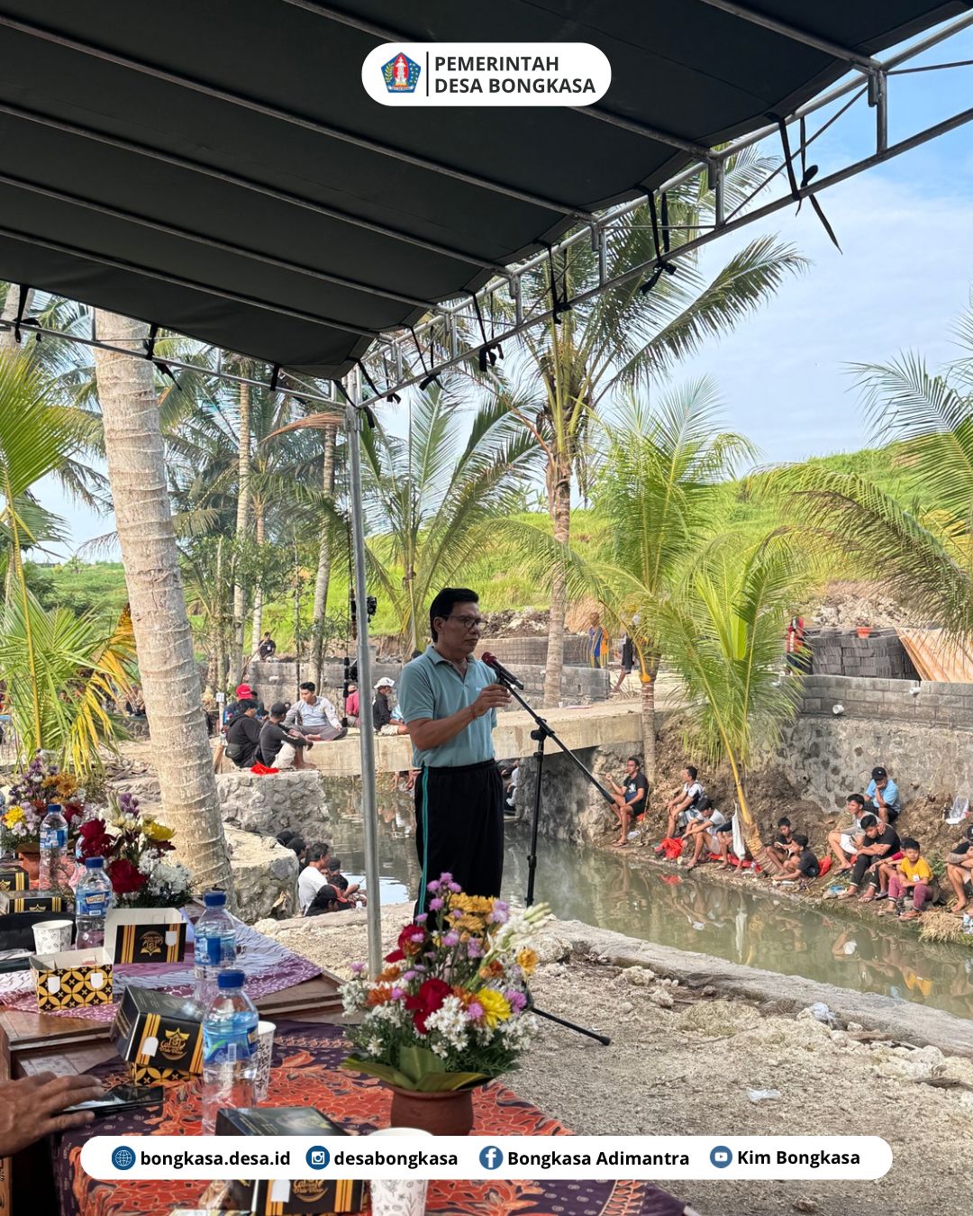 Acara dibuka secara langsung oleh Bapak Camat Abiansemal, yang didampingi oleh Bapak Penjabat (Pj) Perbekel Bongkasa, dan undangan lainnya dengan simbolis pelepasan ikan lele ke sungai, yang dilanjutkan penebaran ikan oleh panitia.