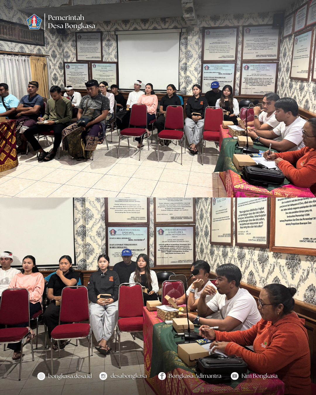 Turut hadir dalam kegiatan ini, Ketua BPD Desa Bongkasa, Sekretaris Desa Bongkasa sekaligus membuka Rapat Koordinasi, Karang Taruna Desa Bongkasa, Perangkat dan Staf Desa Bongkasa.