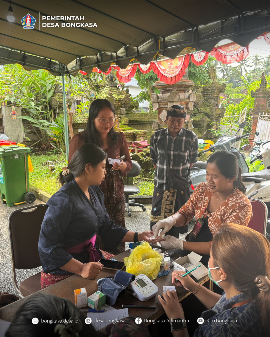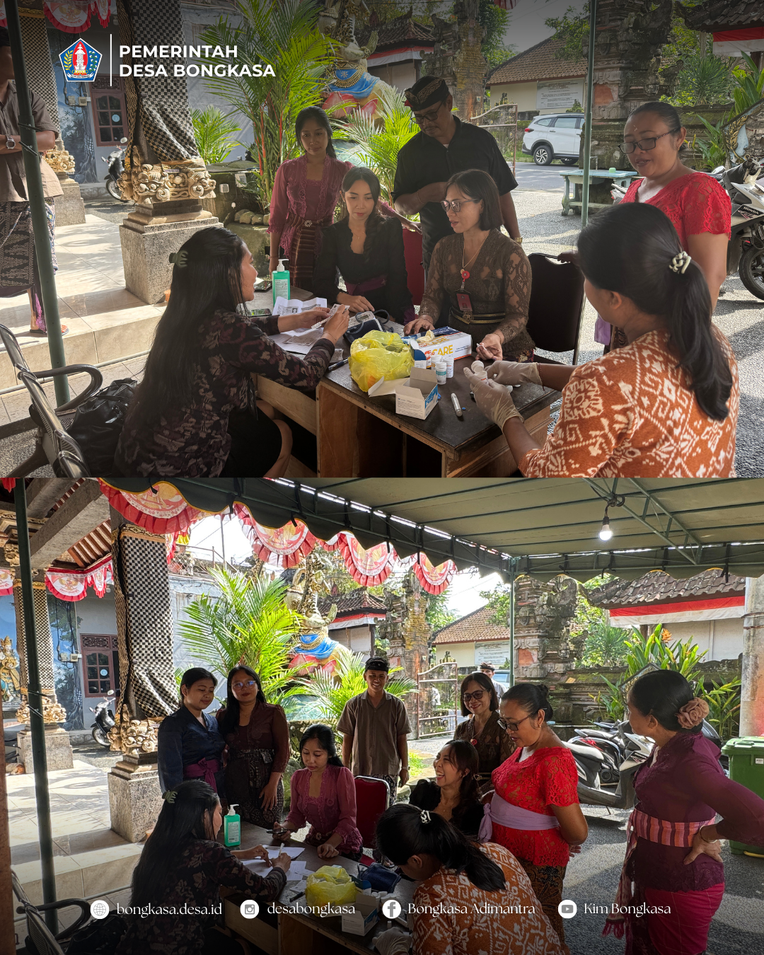 Pemeriksaan dini faktor resiko Penyakit Tidak Menular (PTM) dan deteksi dini kanker payudara dan serviks (IVA test) dengan mobil Layanan Kesehatan Perempuan (MAWAS) yang bertempat di Halaman Kantor Desa Bongkasa pada Kamis, 15 Januari 2026.