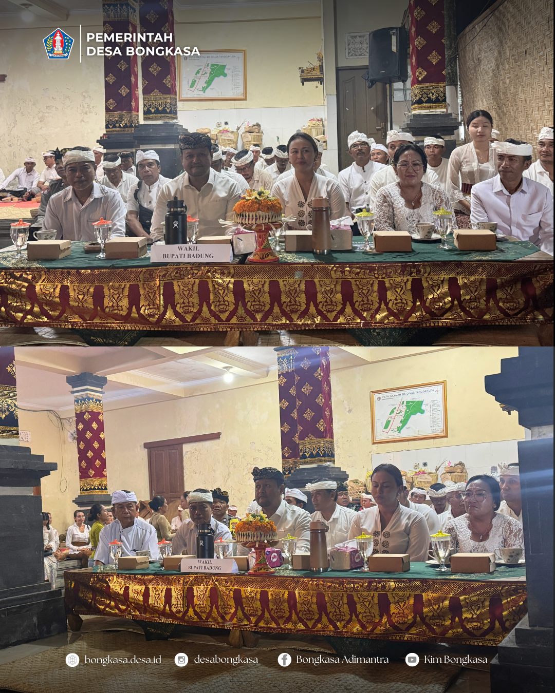 Turut hadir pada kesempatan ini Bapak Wakil Bupati Badung, Ibu Putu Yunita Oktarini selaku anggota DPRD Kab. Badung, Camat Abiansemal, Perbekel Bongkasa Pertiwi, Bendesa Adat Karang Dalem 1 dan Karang Dalem 2, Ketua BPD Bongkasa, Babinsa dan Bhabinkamtibmas, Bendesa Adat Bongkasa dan Kutaraga, Bendesa Adat Tanggayuda Ubud serta Prajuru Tanggayuda Ubud, Kelian Adat dan Dinas se-Desa Bongkasa Pertiwi, Kelian Adat se-Desa Bongkasa serta Krama Banjar Tanggayuda.