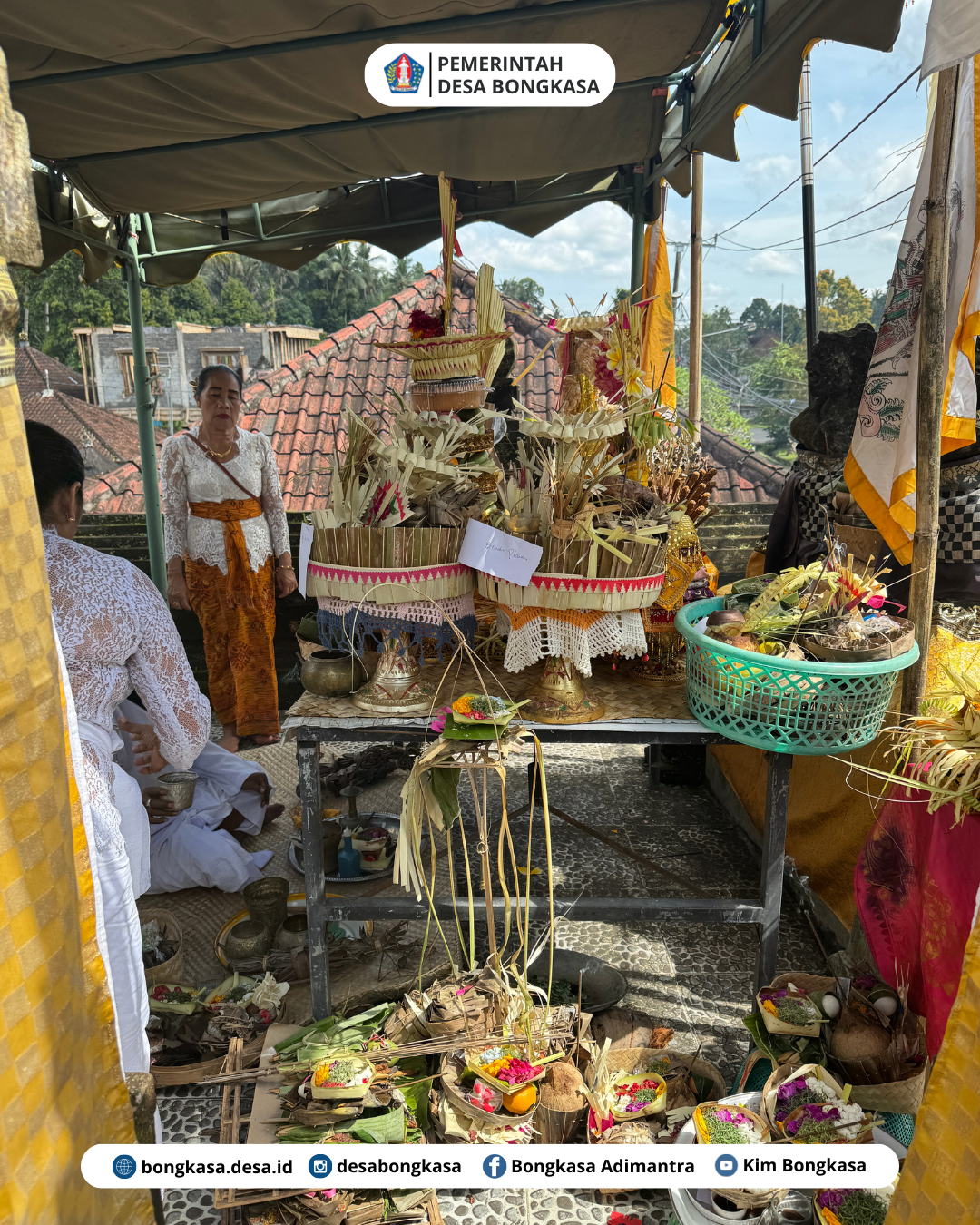Pemerintah Desa Bongkasa melaksanakan persembahyangan bersama dalam rangka memperingati Piodalan Pelinggih Kantor Desa Bongkasa yang jatuh pada Rahina Purnama Kapitu dan bertepatan dengan rahina Tumpek Krulut pada Sabtu, 3 Januari 2026.