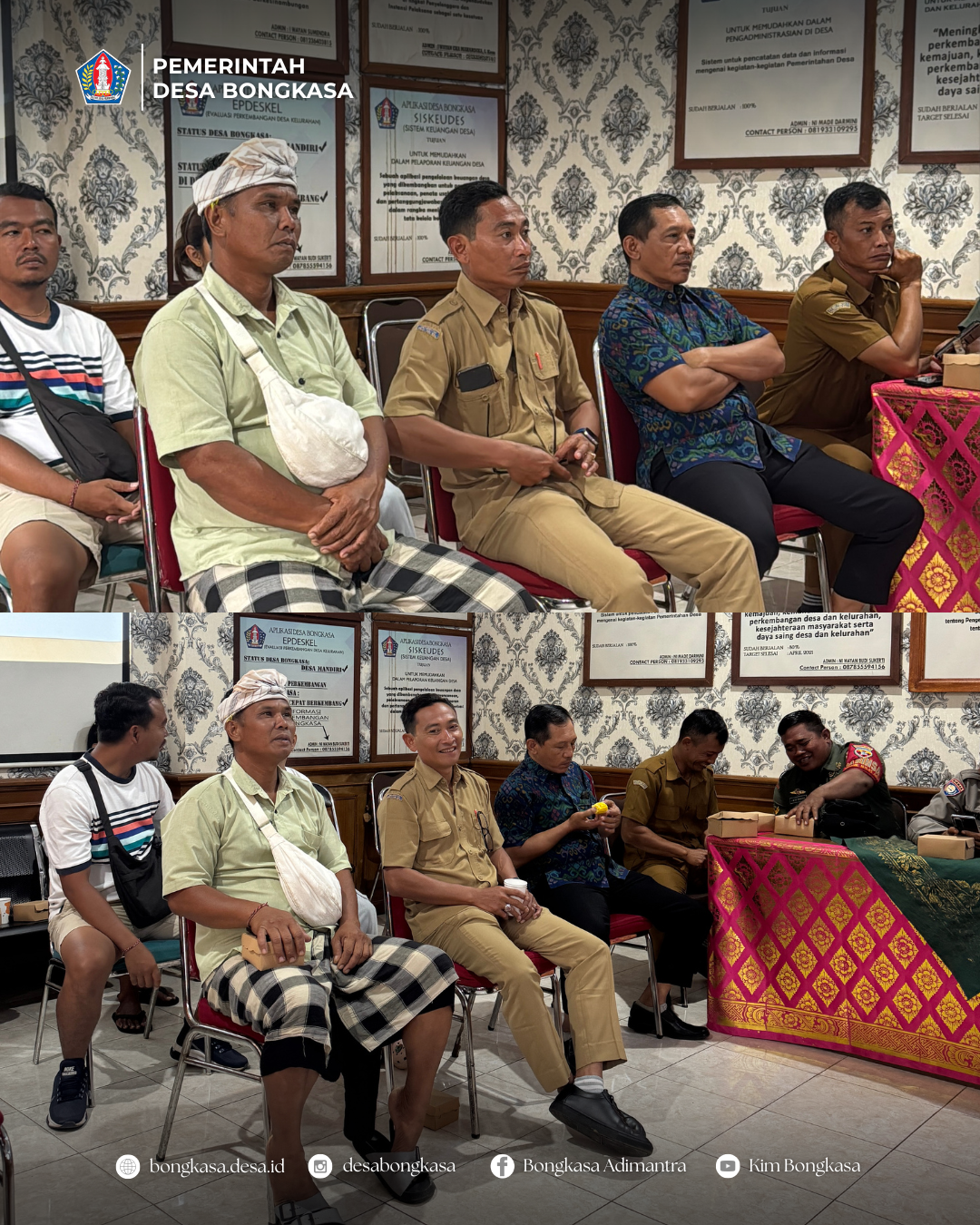 Pemerintah Desa Bongkasa pada Senin, 9 Februari 2026, bertempat di Aula Kantor Desa Bongkasa memfasilitasi Rapat Koordinasi dan Klarifikasi terkait adanya informasi pemasangan rambu larangan (dilarang masuk) di wilayah Banjar Sayan Agung dan Sayan Tua.