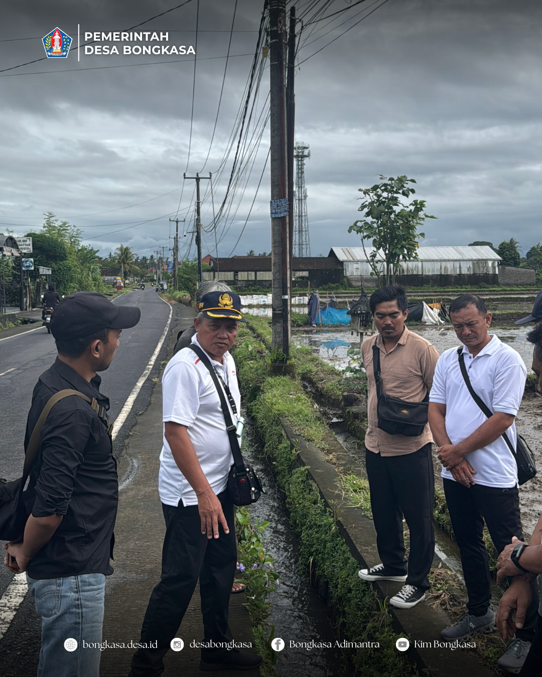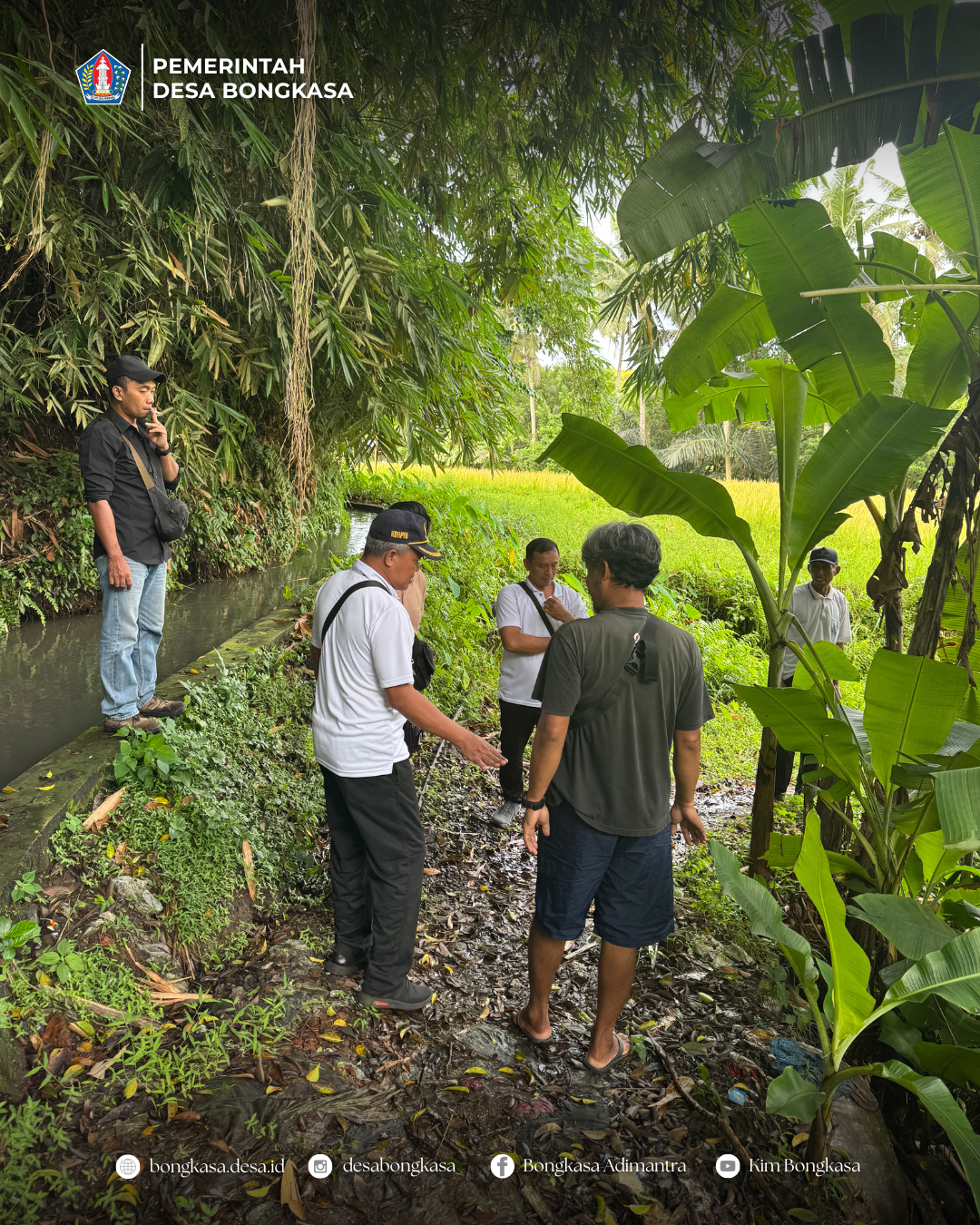 Pemerintah Desa Bongkasa mendampingi Dinas PUPR Kabupaten Badung untuk melakukan pengecekan saluran irigasi Subak Sengempel pada Jumat, 13 Februari 2026.