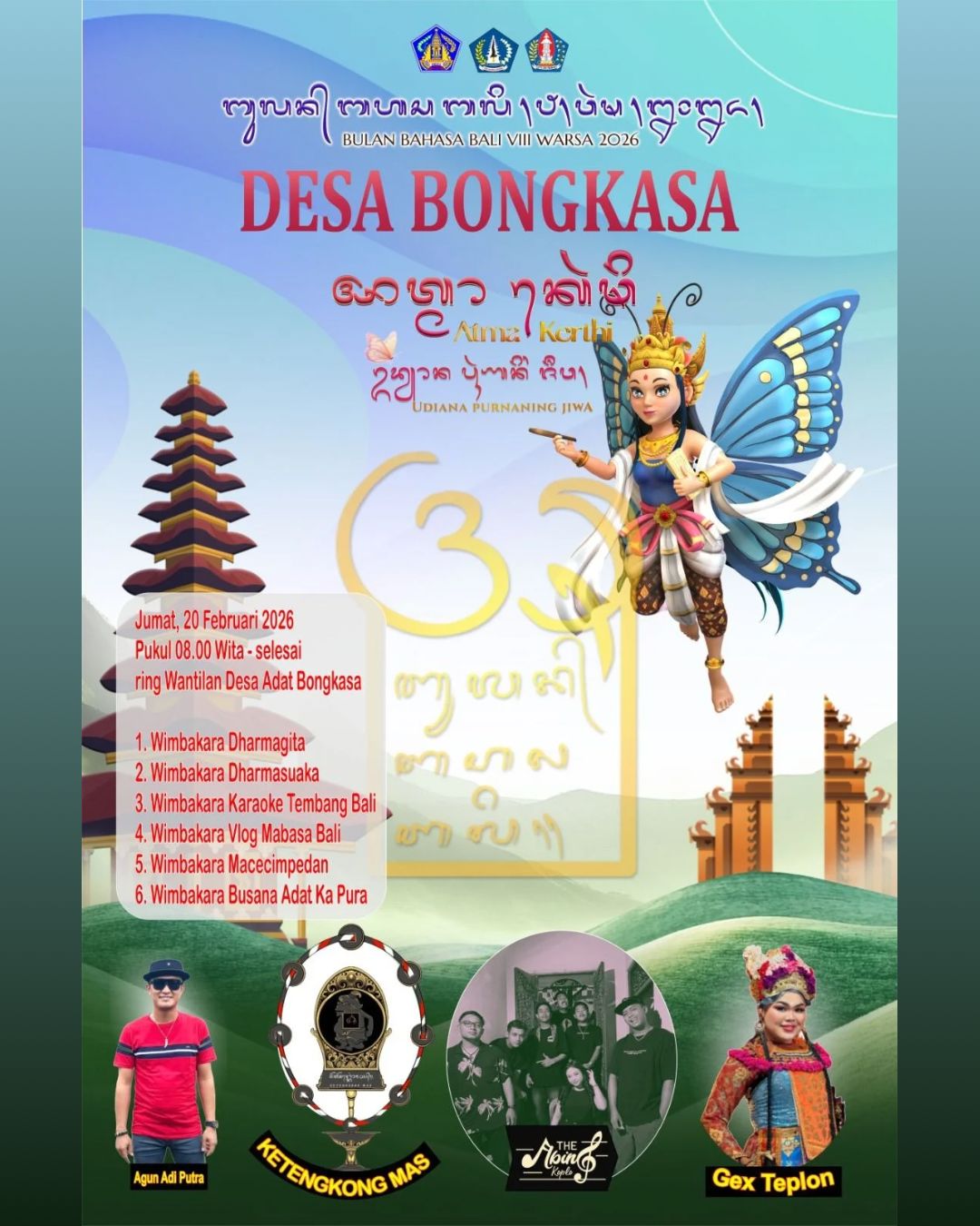 Om swastiastu ngiring piarsayang pamargi Bulan Bahasa Bali VIII Desa Bongkasa Warsa 2026 wenten makudang-kudang wimbakara