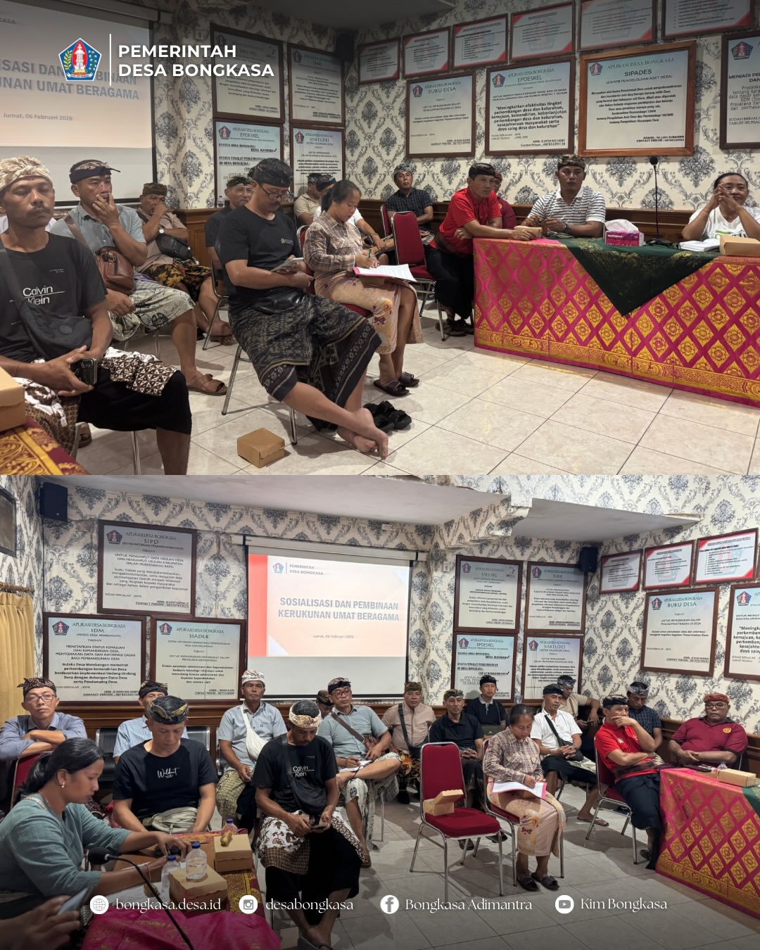 Pemerintah Desa Bongkasa mengadakan Sosialisasi dan Pembinaan Program Kerukunan Umat Beragama pada Jumat, 6 Februari 2026.