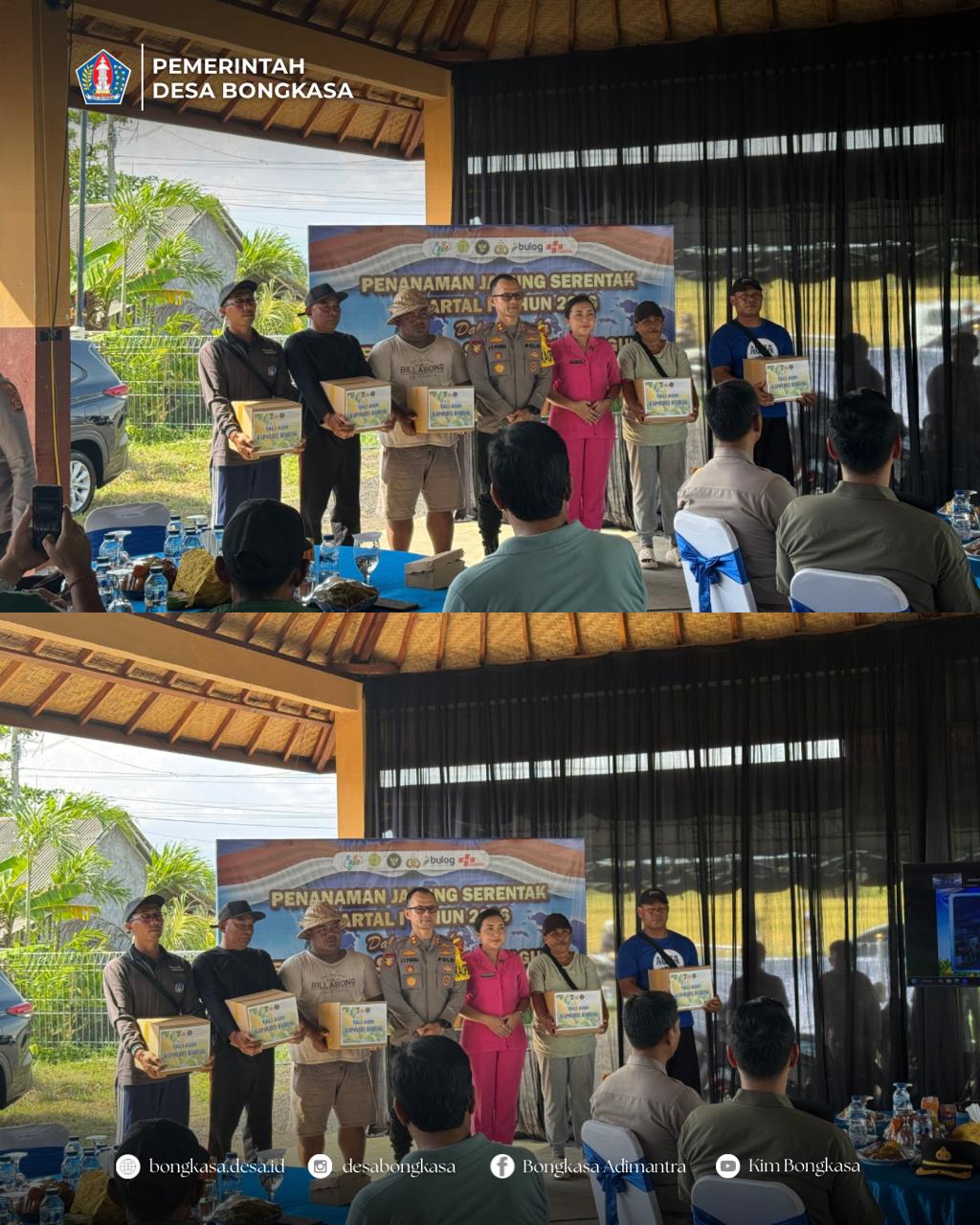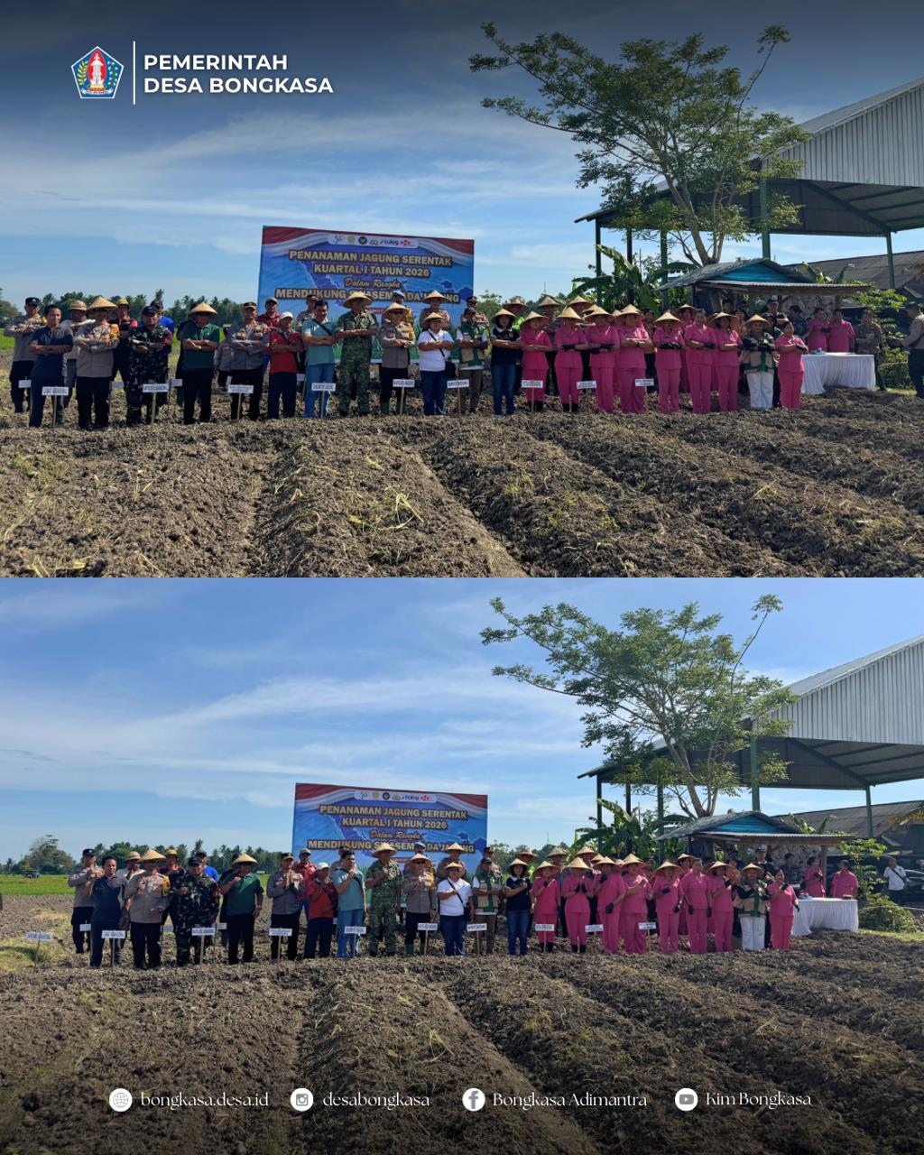 Pemerintah Desa Bongkasa mendampingi kegiatan Penanaman Jagung Serentak Kuartal I Tahun 2026 yang diselenggarakan oleh Polres Badung pada Sabtu, 7 Maret 2026 bertempat di Lahan Ketahanan Pangan, Subak Citra Desa Bongkasa, Kec. Abiansemal.